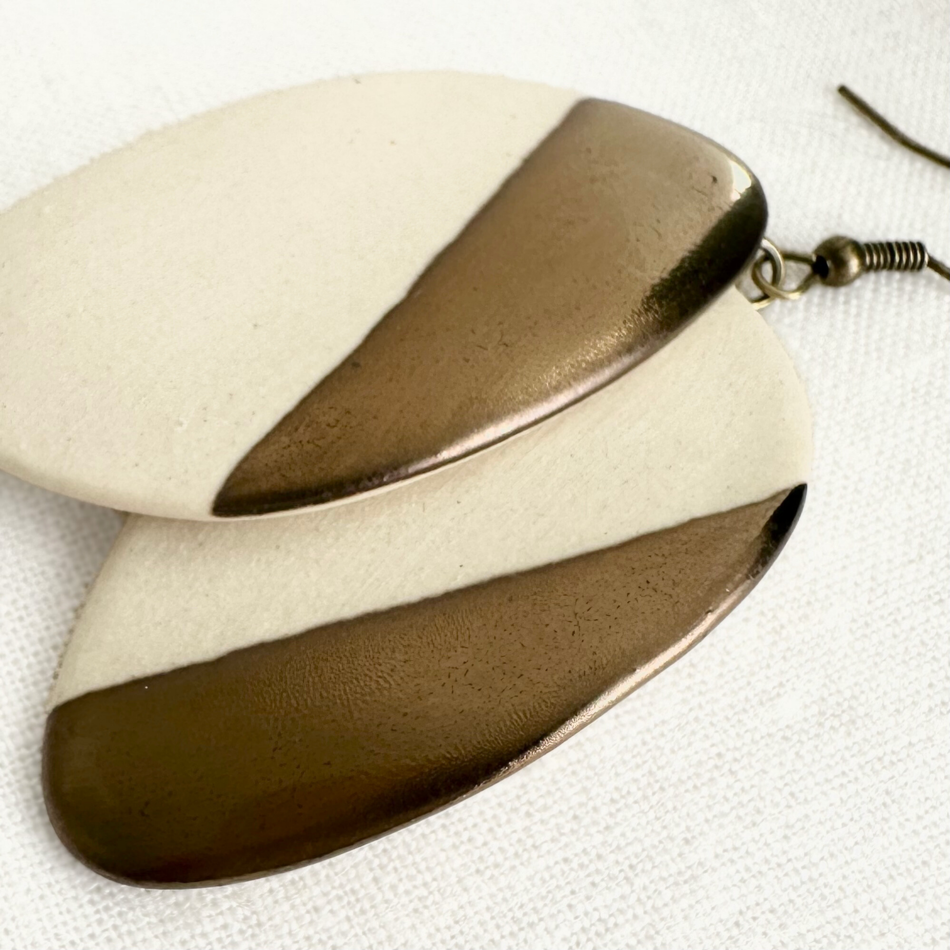 White Oblong Ceramic Earrings (Gold Dipped)