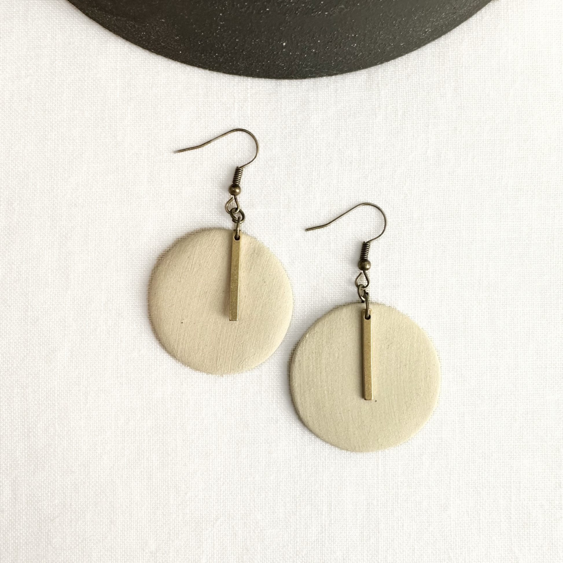 Round, white and textured fired ceramic earrings by Mugs & Bugs. These unique, hand-made earrings are the perfect complement to any outfit, the minimalist design allowing for versatility and creativity in your personal style. The un-glazed look allows the natural texture and beauty of the original clay body to shine through in this piece, and their lightweight composition, as well as hypoallergenic metal hardware ensure comfort. No two pairs are exactly the same as each of our earrings are made by hand, so slight variations in size and shape may occur (and make them that much more special). We hope you enjoy wearing these as much as we enjoy hand-making them! Dimensions: Ceramic- 1.25" x 1.25" Hardware- 1"